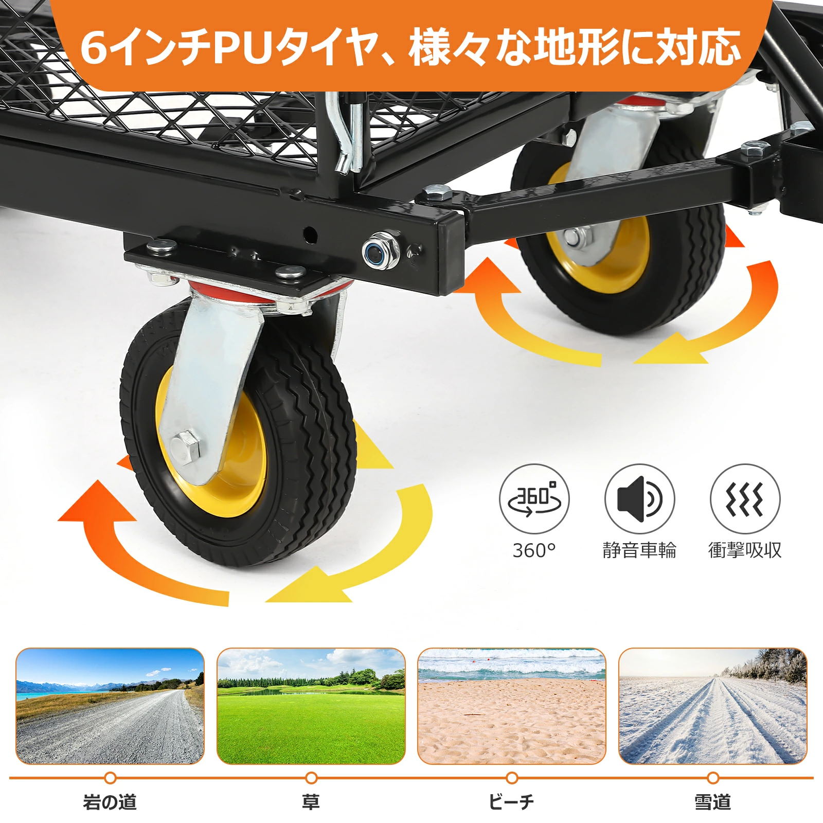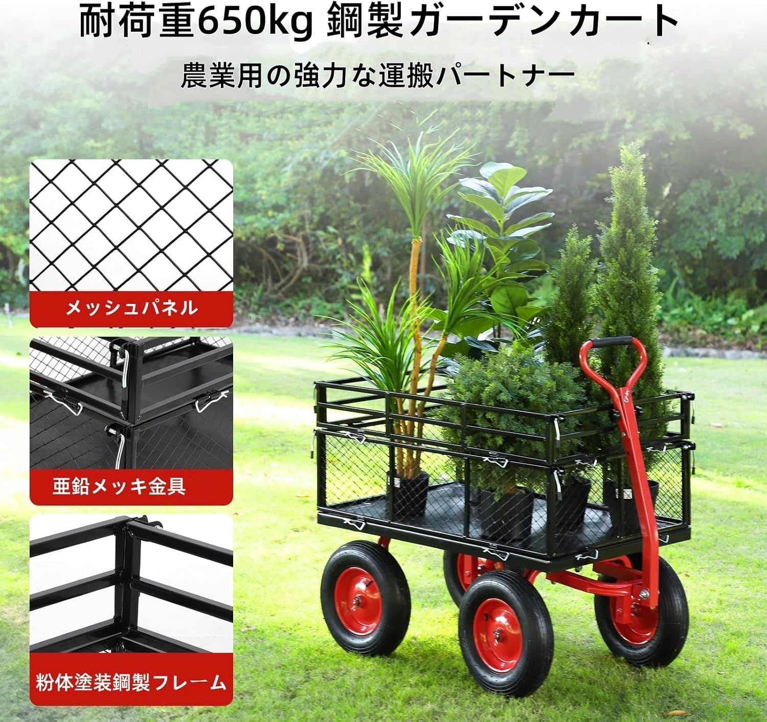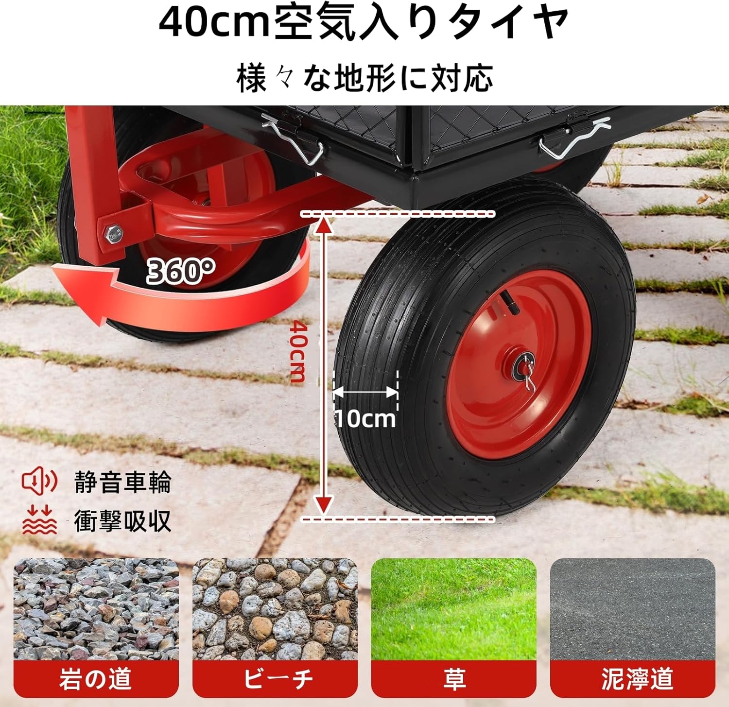ガーデンカート カゴ台車 メッシュカート 耐荷重150kg/650kg 空気圧タイヤ アウトドアカート