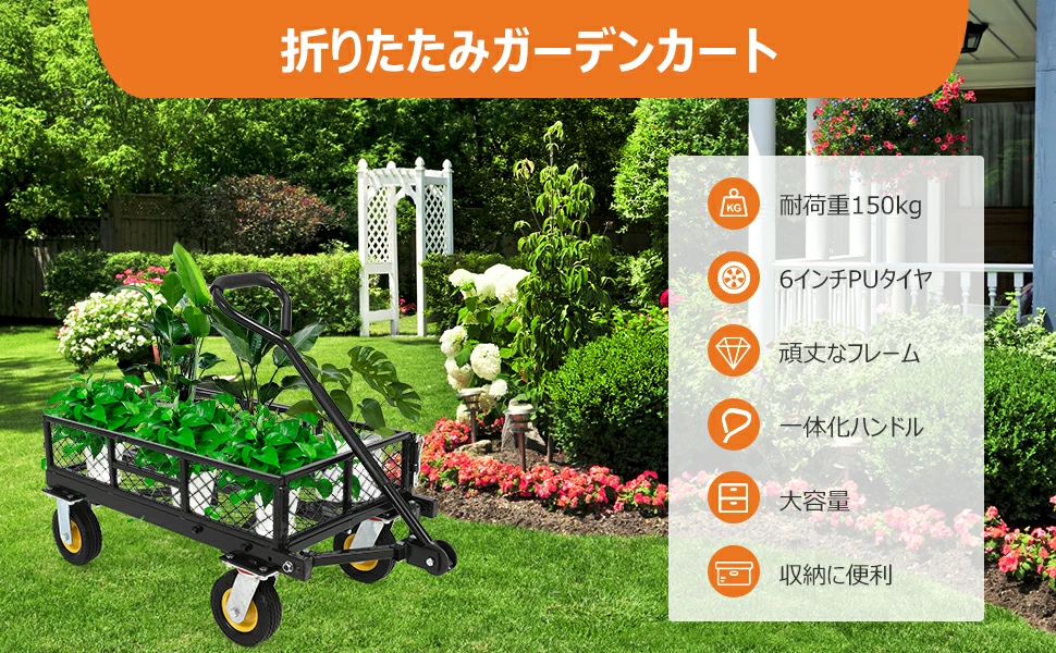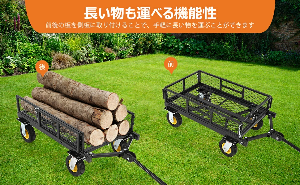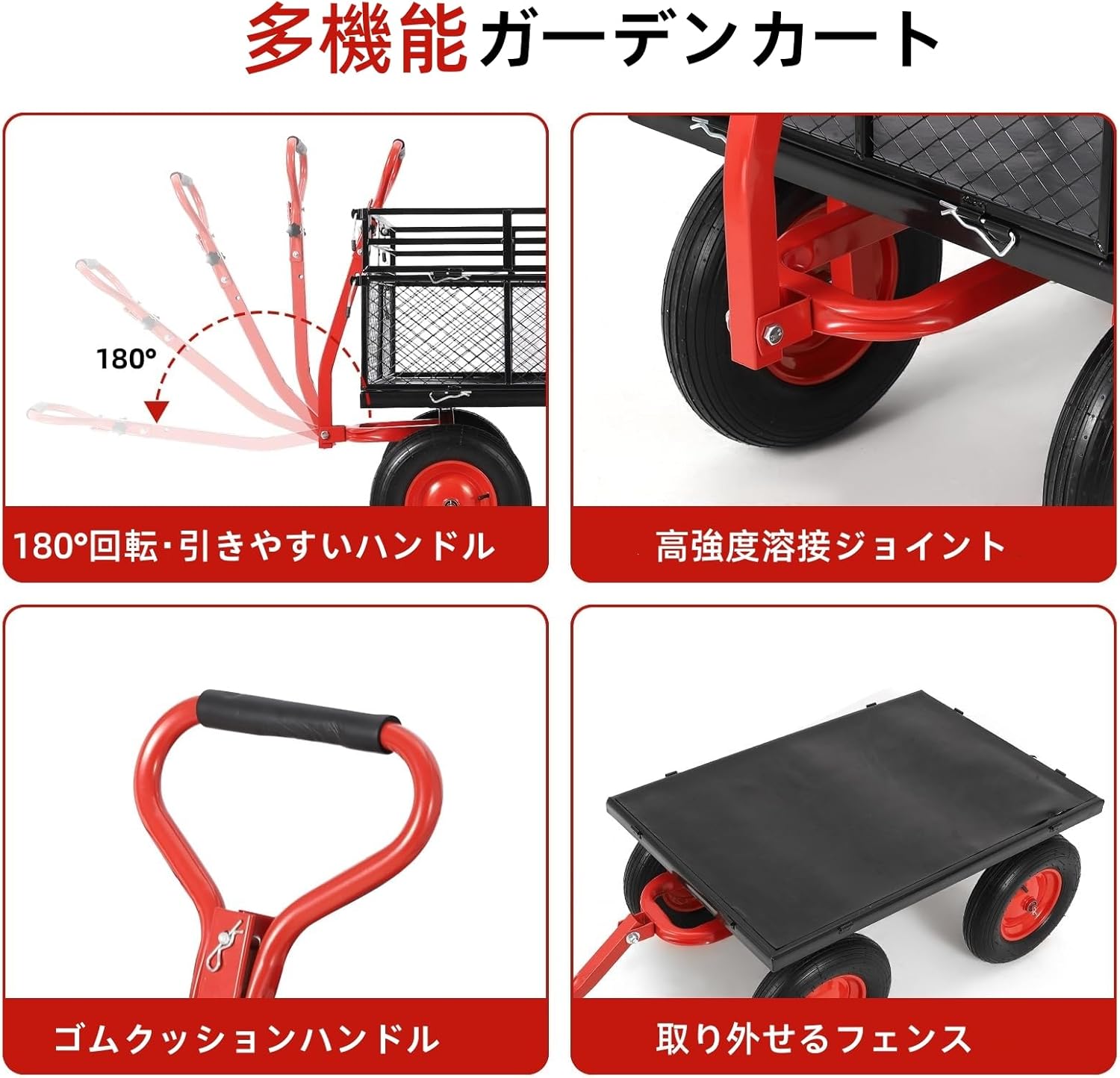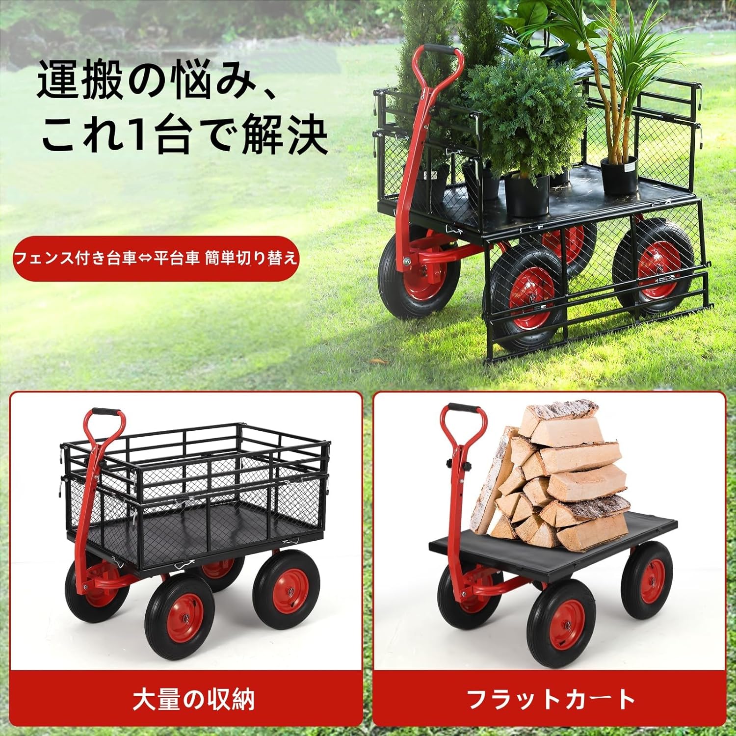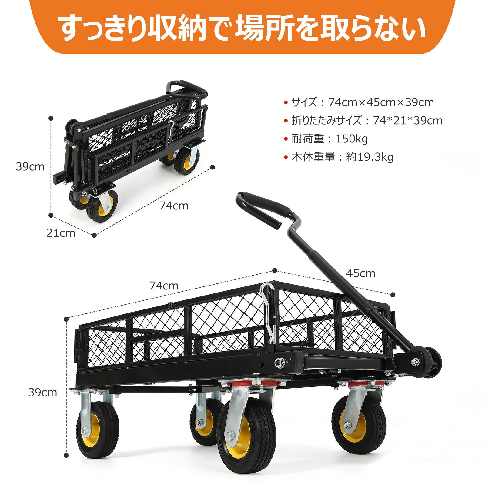 ガーデンカート カゴ台車 メッシュカート 耐荷重150kg/650kg 空気圧タイヤ アウトドアカート