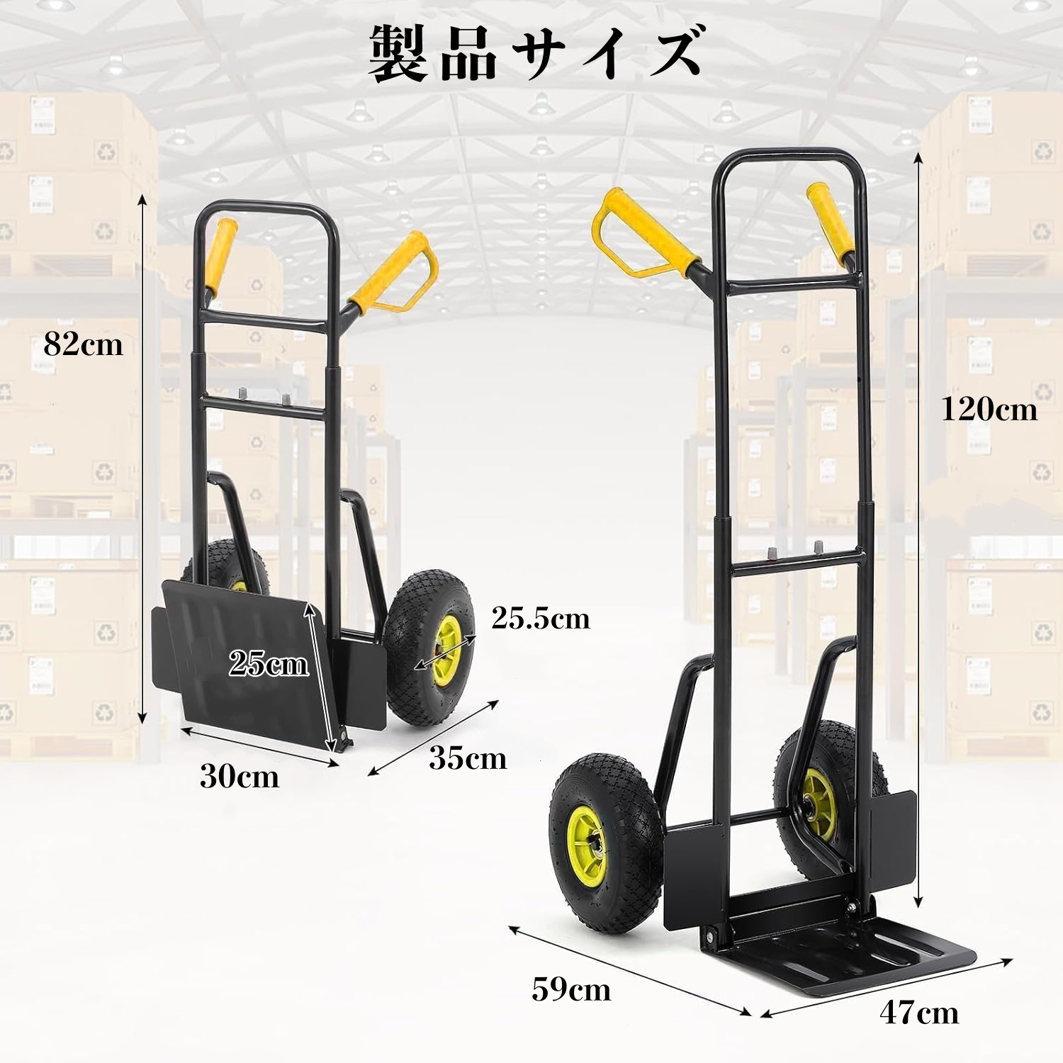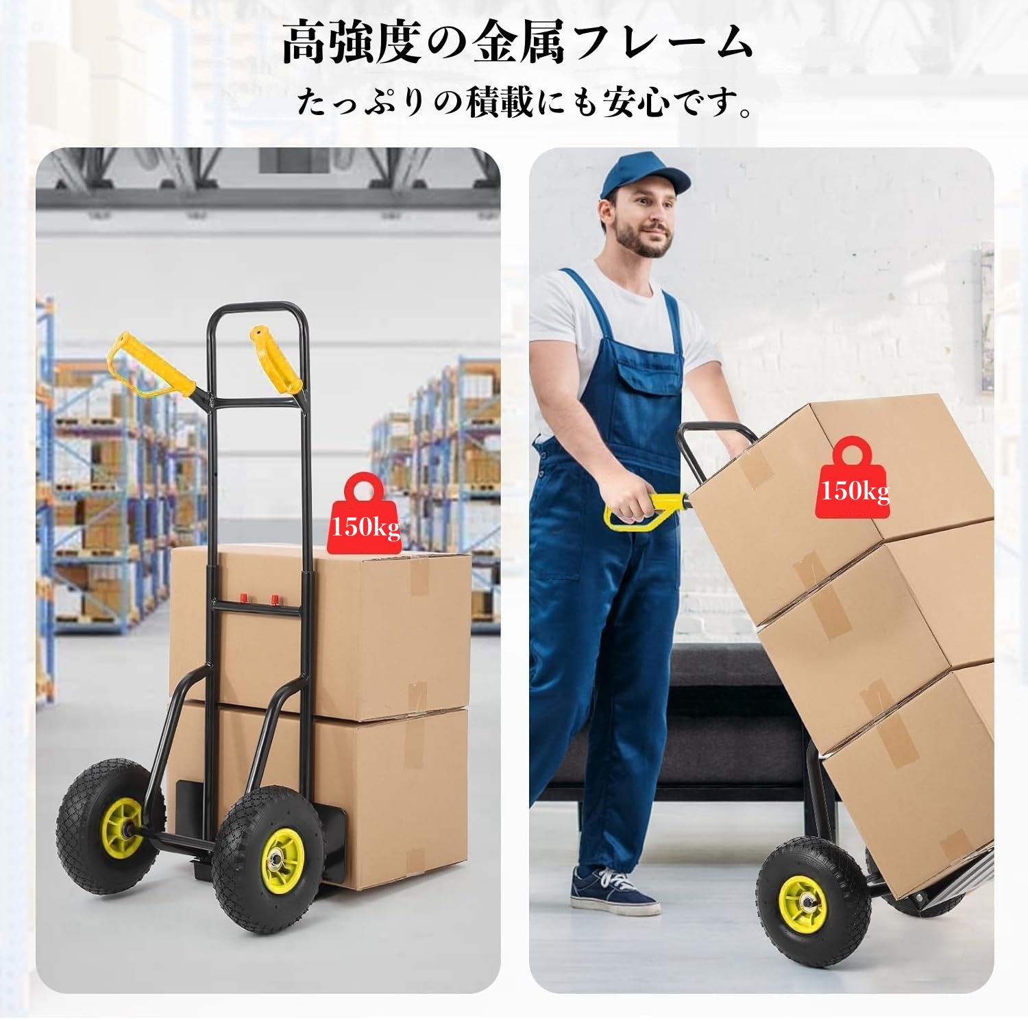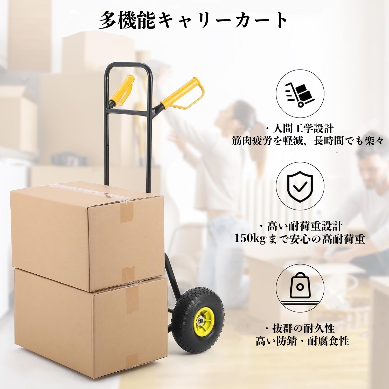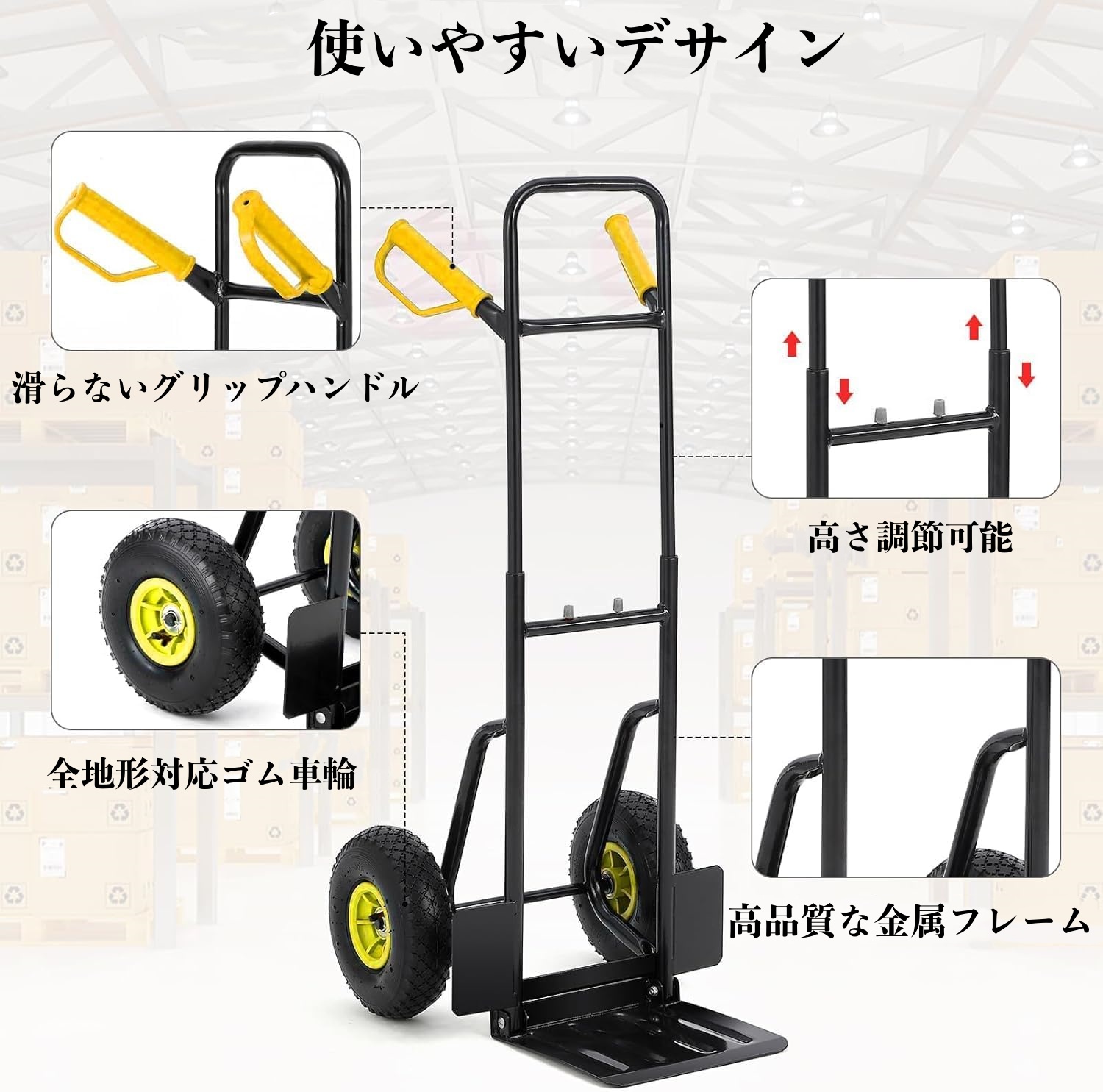 キャリカート ハンドトラック 折りたたみ式 耐荷重150kg 高さ調節 ビッグタイヤ 台車 頑丈 多地形 荷物運搬 業務用