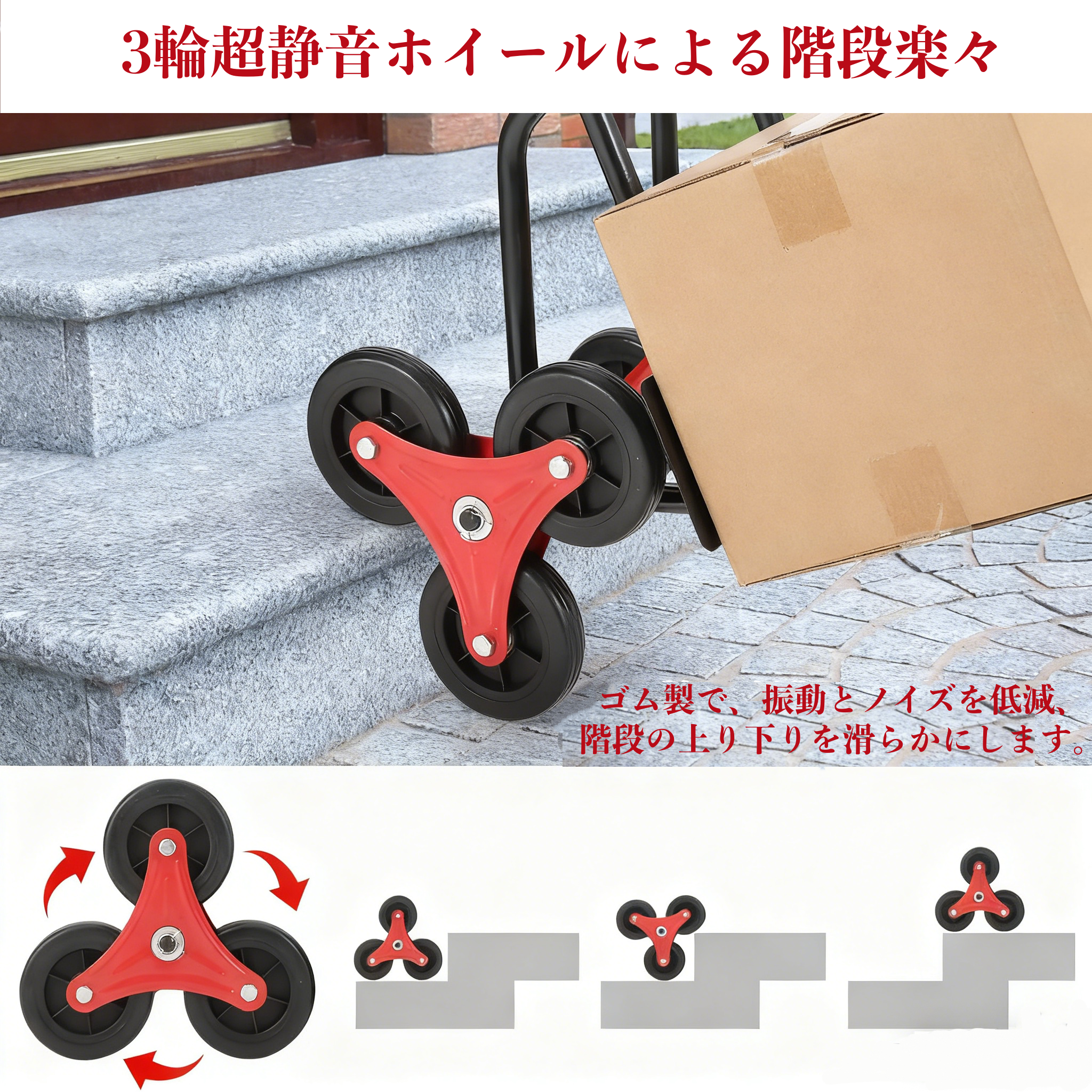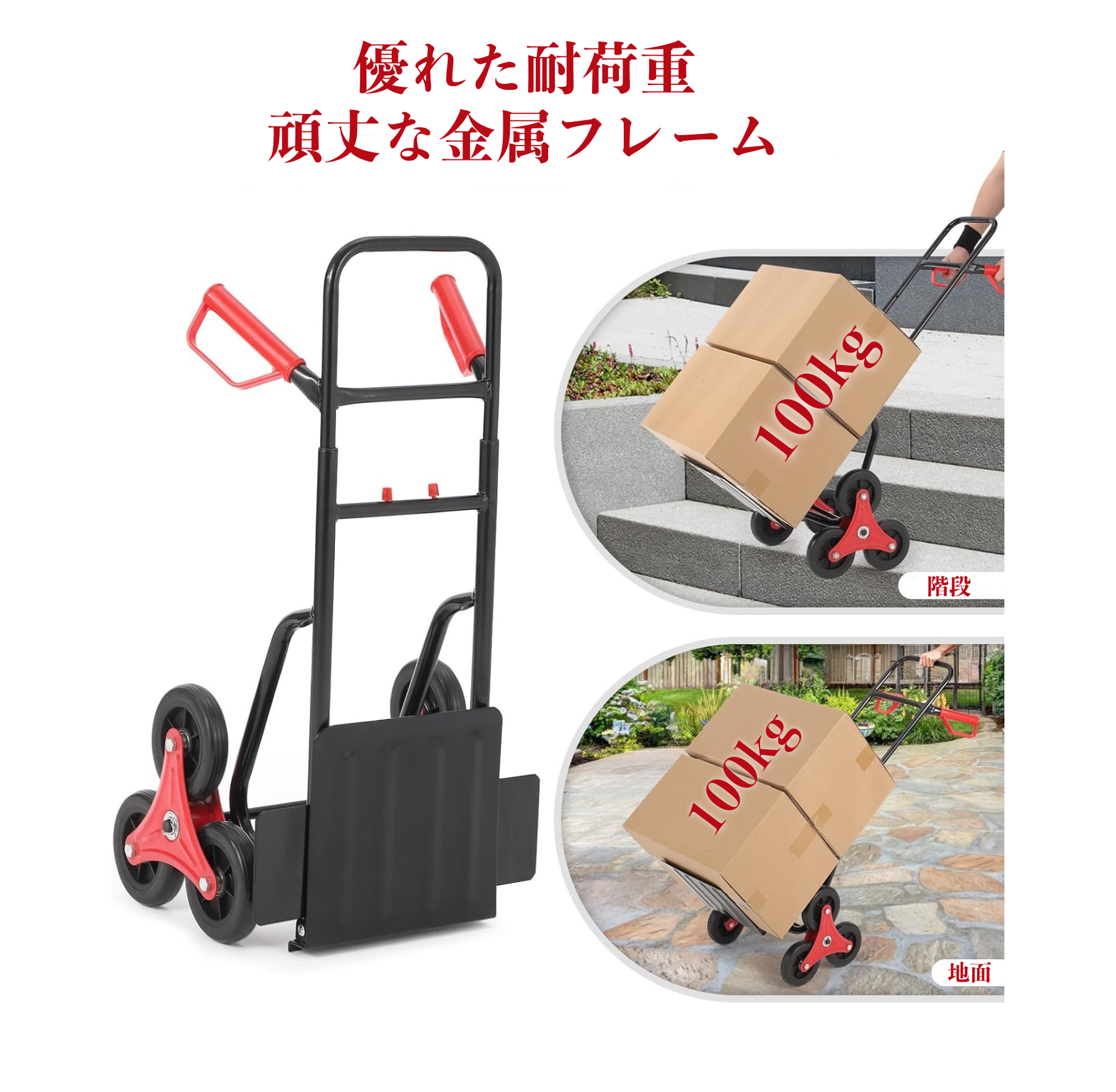 キャリーカート 折りたたみ 3輪 台車 耐荷重100kg 階段 段差 6輪の回転式タイヤ 台車 静音 軽量コンパクト 大型タイヤ 高さ調節 荷物運搬 ハンドトラック 引越し アウトドア