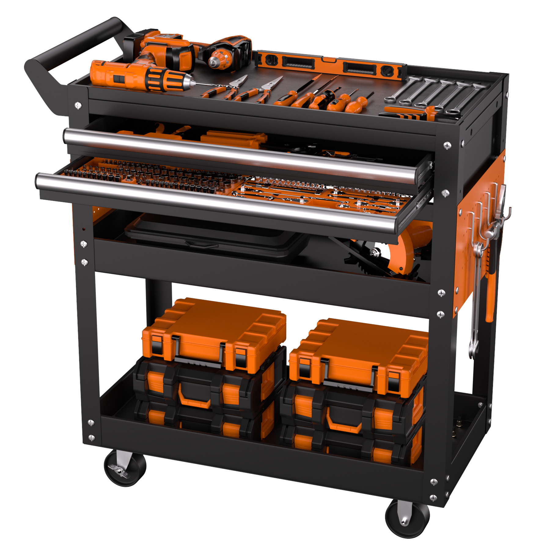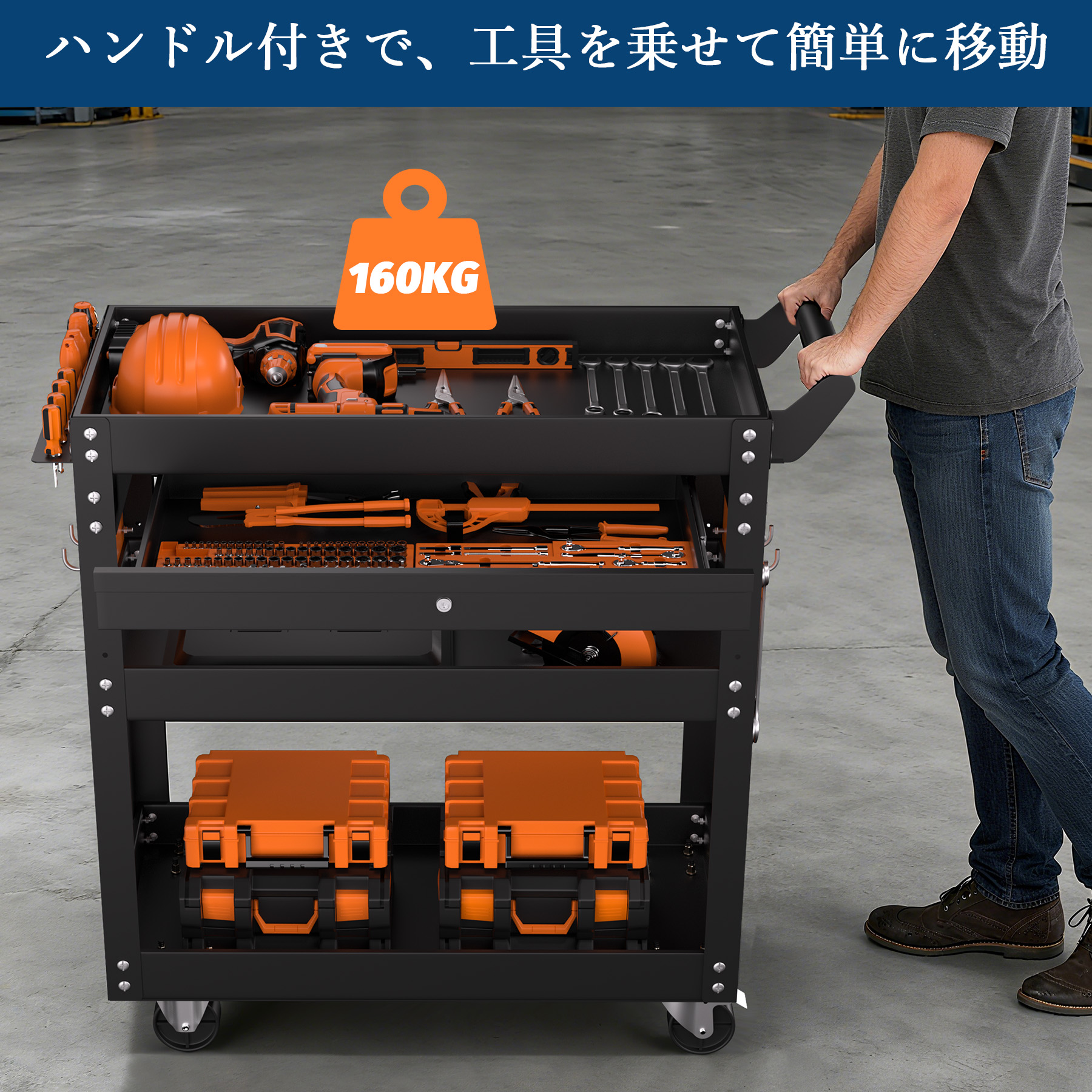 【ハンドル付きで、工具を乗せて簡単に移動できます。】