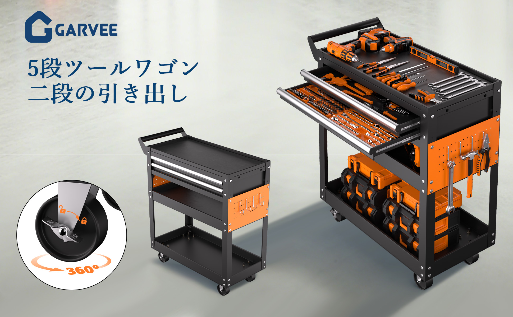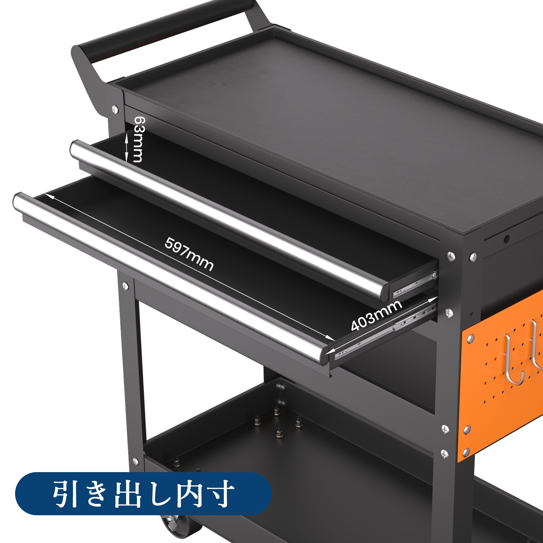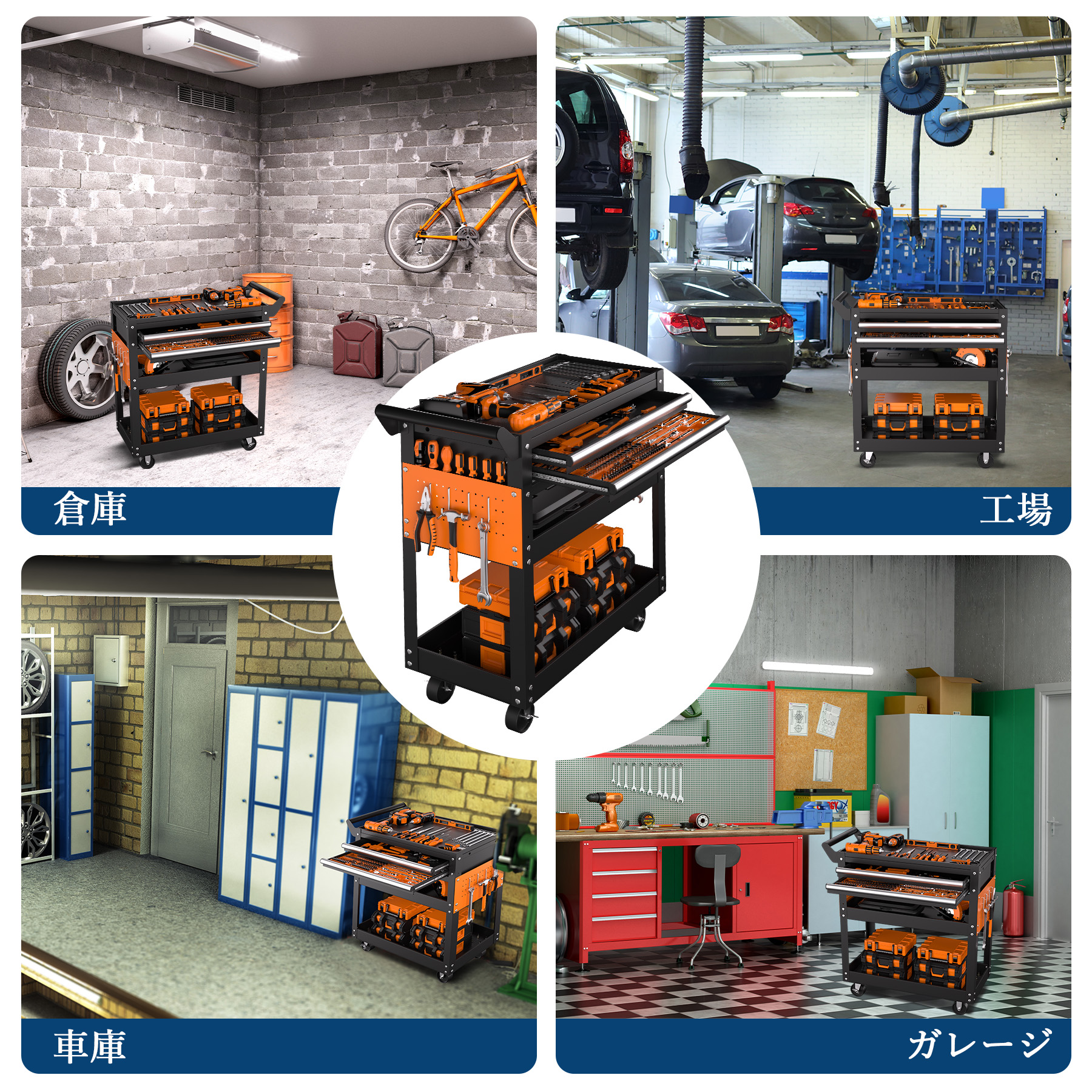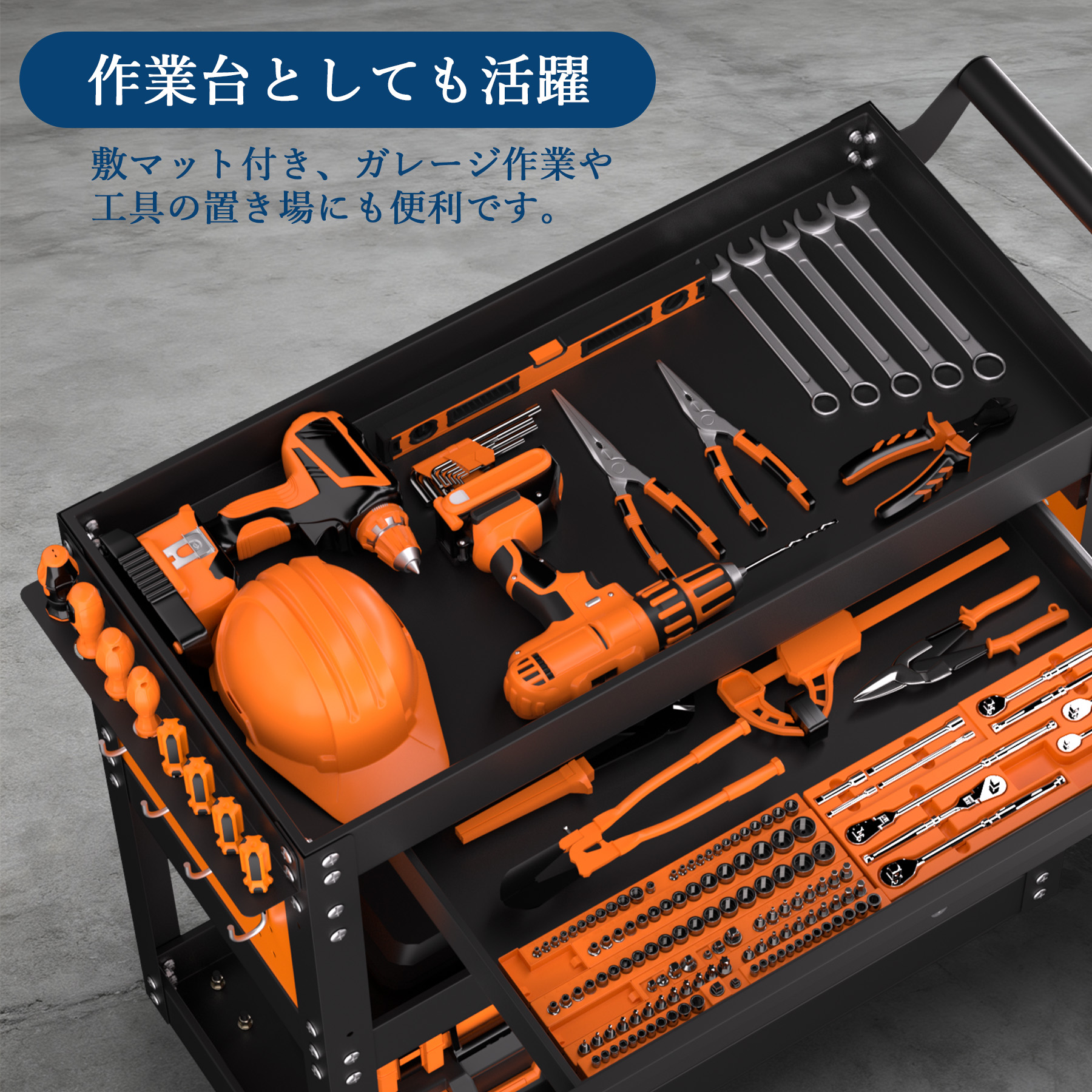 敷マット付き、ガレージ作業や工具の置き場にも便利です。
