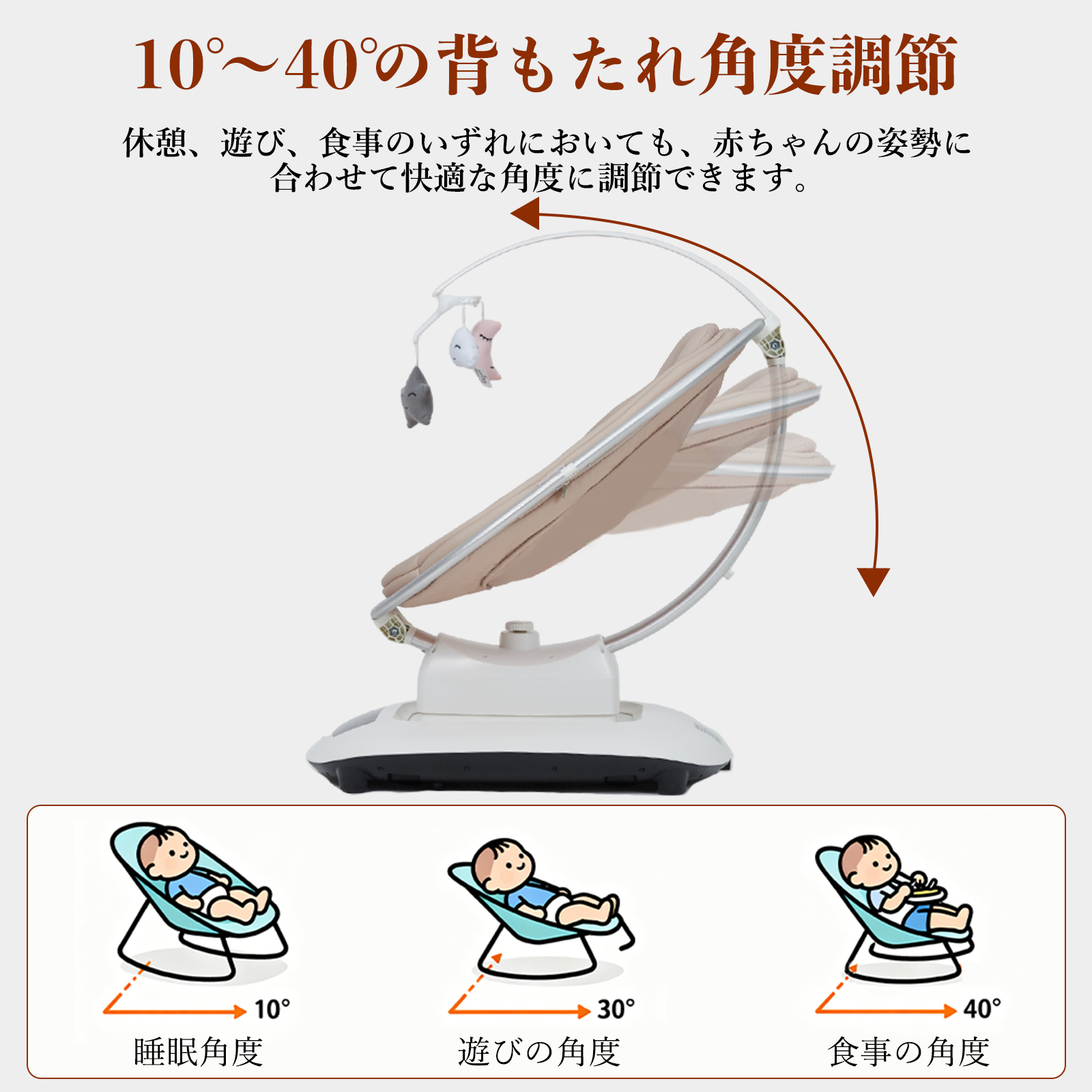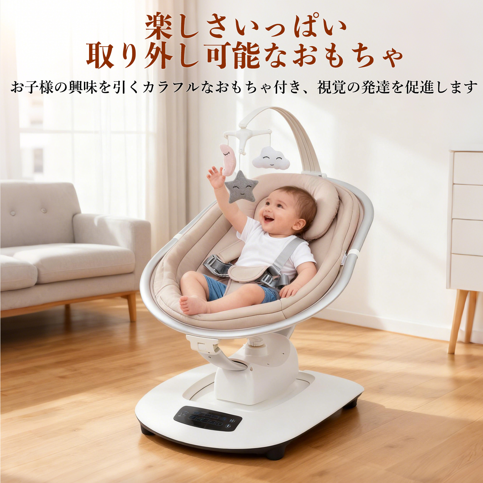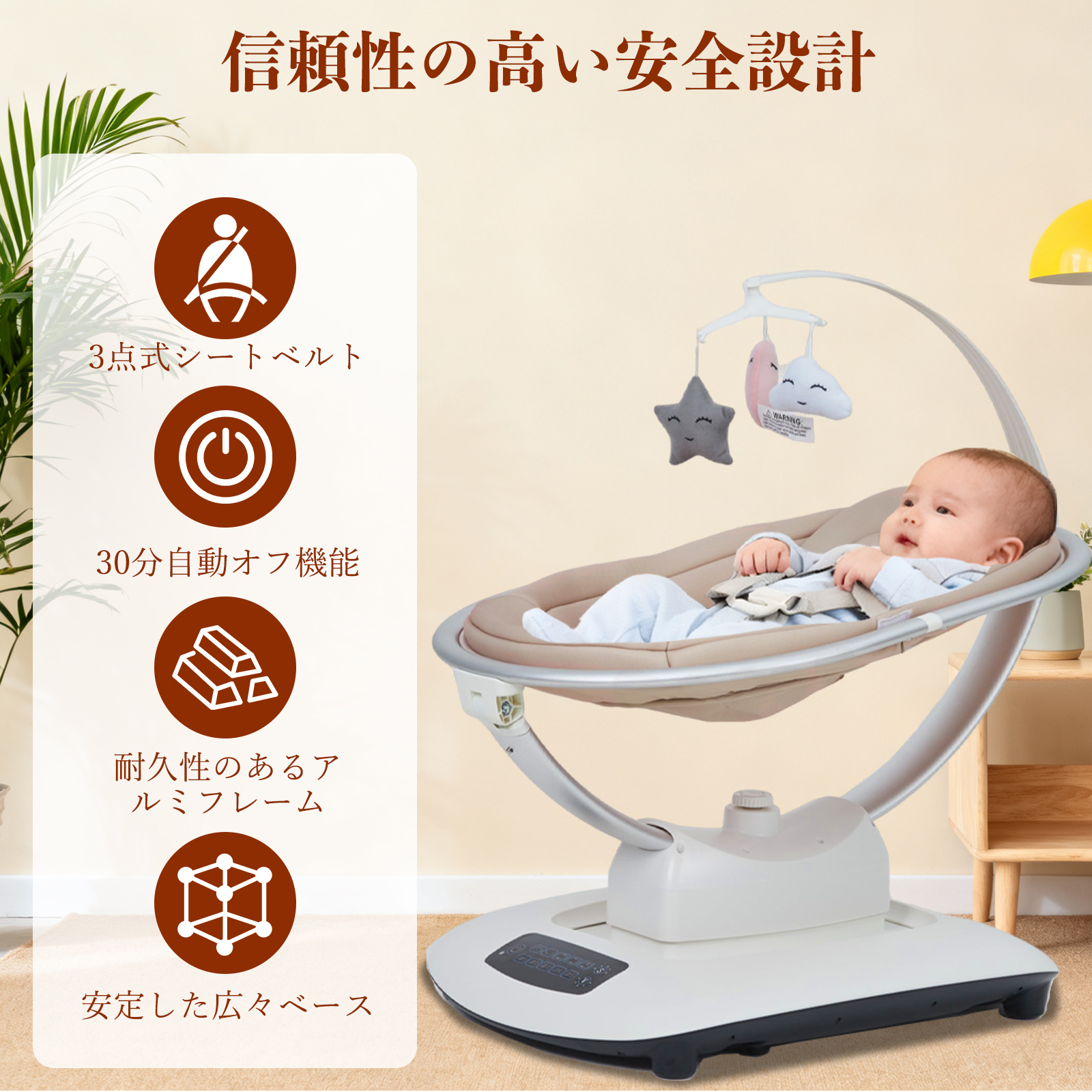 おすすめポイント | 【5モード揺れ&Bluetoothでスマート育児】 【10°–40°無段階リクライニングで快適サポート】 【30分自動オフ&安心設計で使い続けやすく】 【安心素材 & 丸洗いで清潔に】 【出産祝いのギフトに最適なデザイン】 |