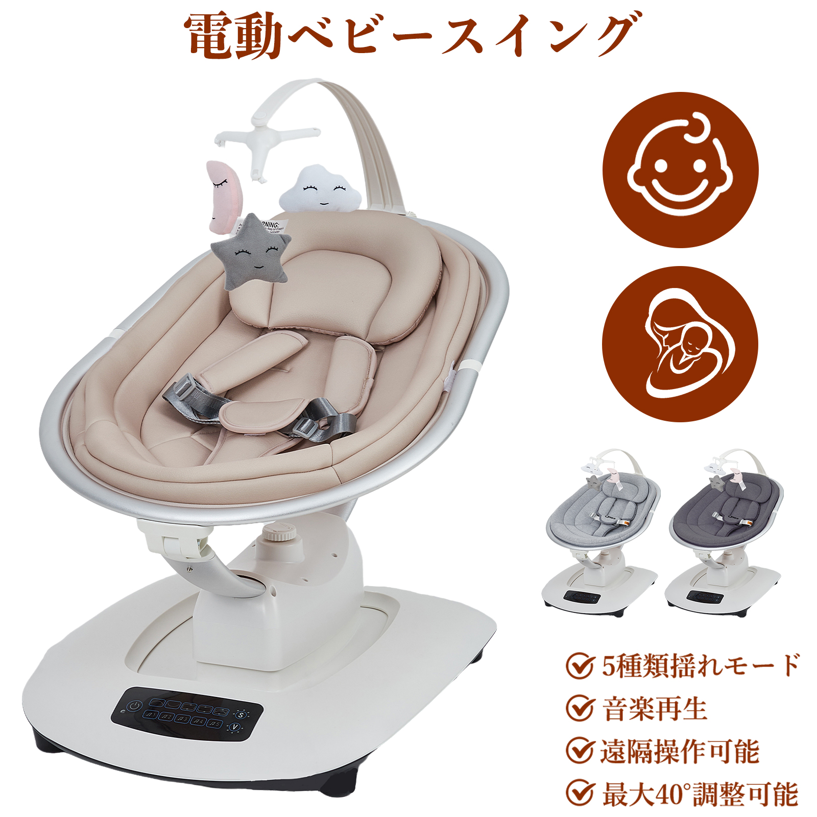 ベビーバウンサー 電動 ベビーゆりかご ベビーラック スウィング ロッキングチェア 電動スイング ベビーチェア ラック リクライニング機能 おもちゃ 音楽トイ安全ベルト 持ち運びしやすい 新生児 通気性