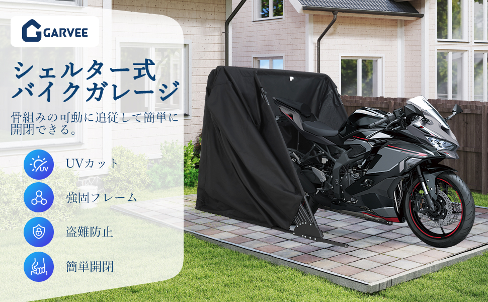 GARVEE バイク ガレージ 折りたたみ式 バイクシェルター サイクルハウス ガレージテント バイクポート 防水 防犯対策